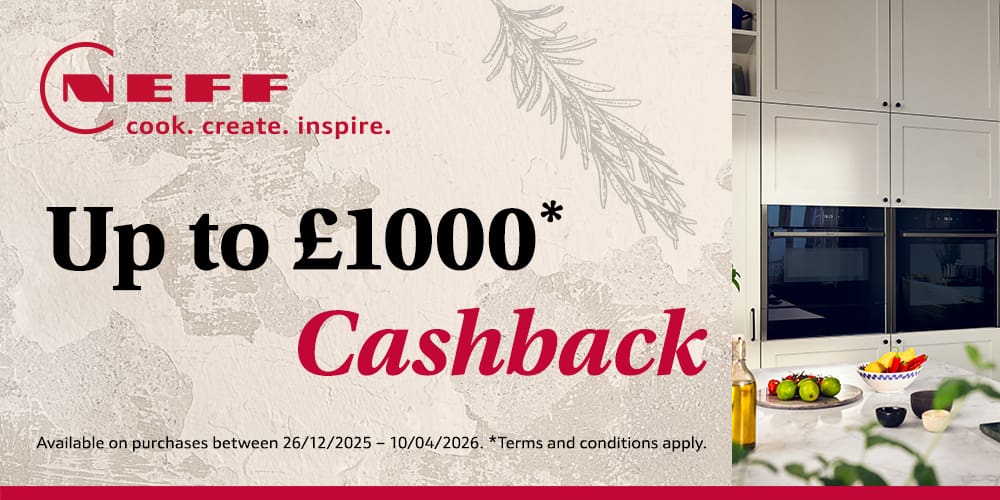 From now until the 10th April 2026, Siemens and Neff are offering up to £1,000 cashback on appliances purchases through Stadium Studios.